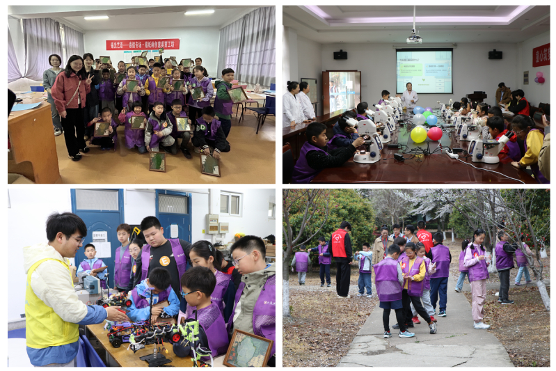 4月3日上午,在带队老师与志愿者的带领下,走进校内多个实验室开启沉浸式探索。孩子们在“微观看世界”项目中操作光学显微镜,观察春日植物花粉、叶片纹路的微观结构;在物理科普课堂感受科学原理的奇妙;亲手体验锡纸画创作、3D打印“造玩具”,还走进智能车实验室了解智能车结构、体验赛道竞速的乐趣。不同实验室的特色体验,让孩子们近距离接触科研、感受科技魅力,种下科学探索的种子。